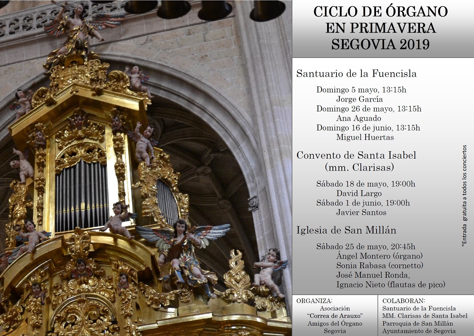 La Asociación «Correa de Araujo» de Amigos del Órgano de Segovia organiza este interesante Ciclo de Conciertos de Órgano en la primavera de 2019.