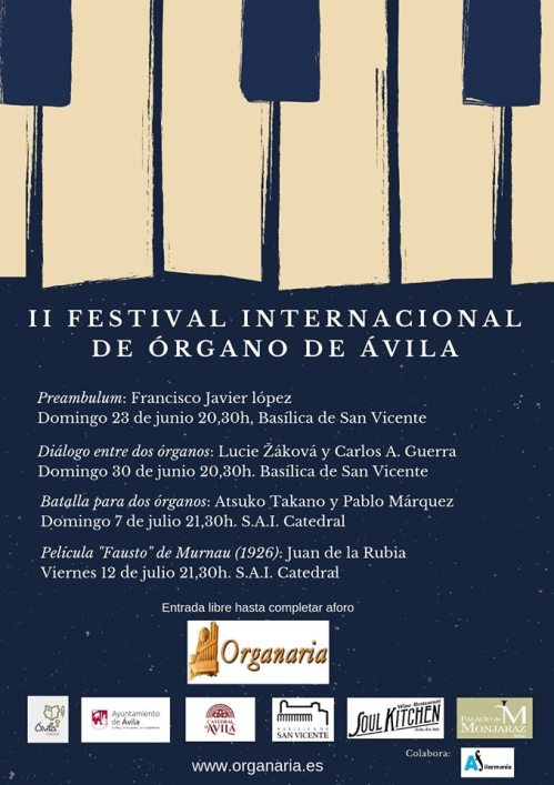 II Festival Internacional de Órgano de Ávila, con un ciclo de conciertos que se celebrarán en la Basílica de San Vicente y en la Catedral de esta ciudad en los meses de junio y julio de 2019.