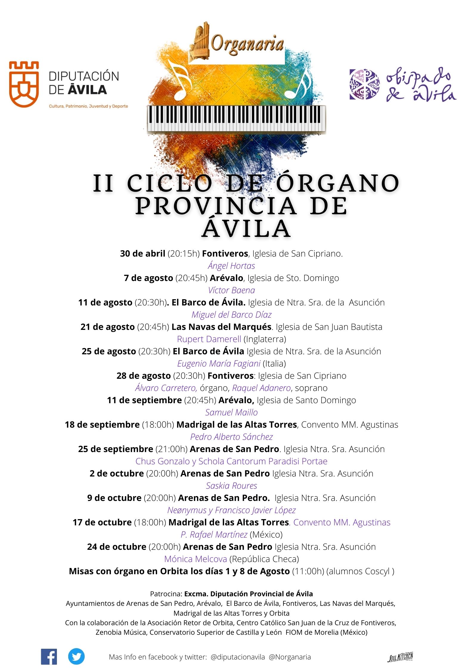 II Ciclo de órgano provincia de Ávila (2021), organizado por: