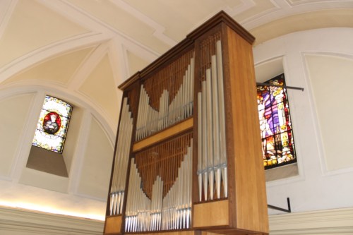 Se trata de un instrumento mecánico construido por la firma Verschueren www.verschuerenorgelbouw.nl en 1970 con número de opus 777 para la capilla del Hospital de Hertorgenbosch (Holanda).