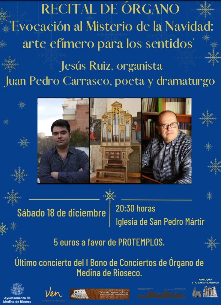 Jesús Ruiz, órgano. Obras: Sweelinck, Buxtehude, Bruna y Bach. Lugar: Santuario Nacional (Valladolid). Organiza: Asociación «Manuel Marín» de Amigos del Órgano de Valladolid y FMCVa.