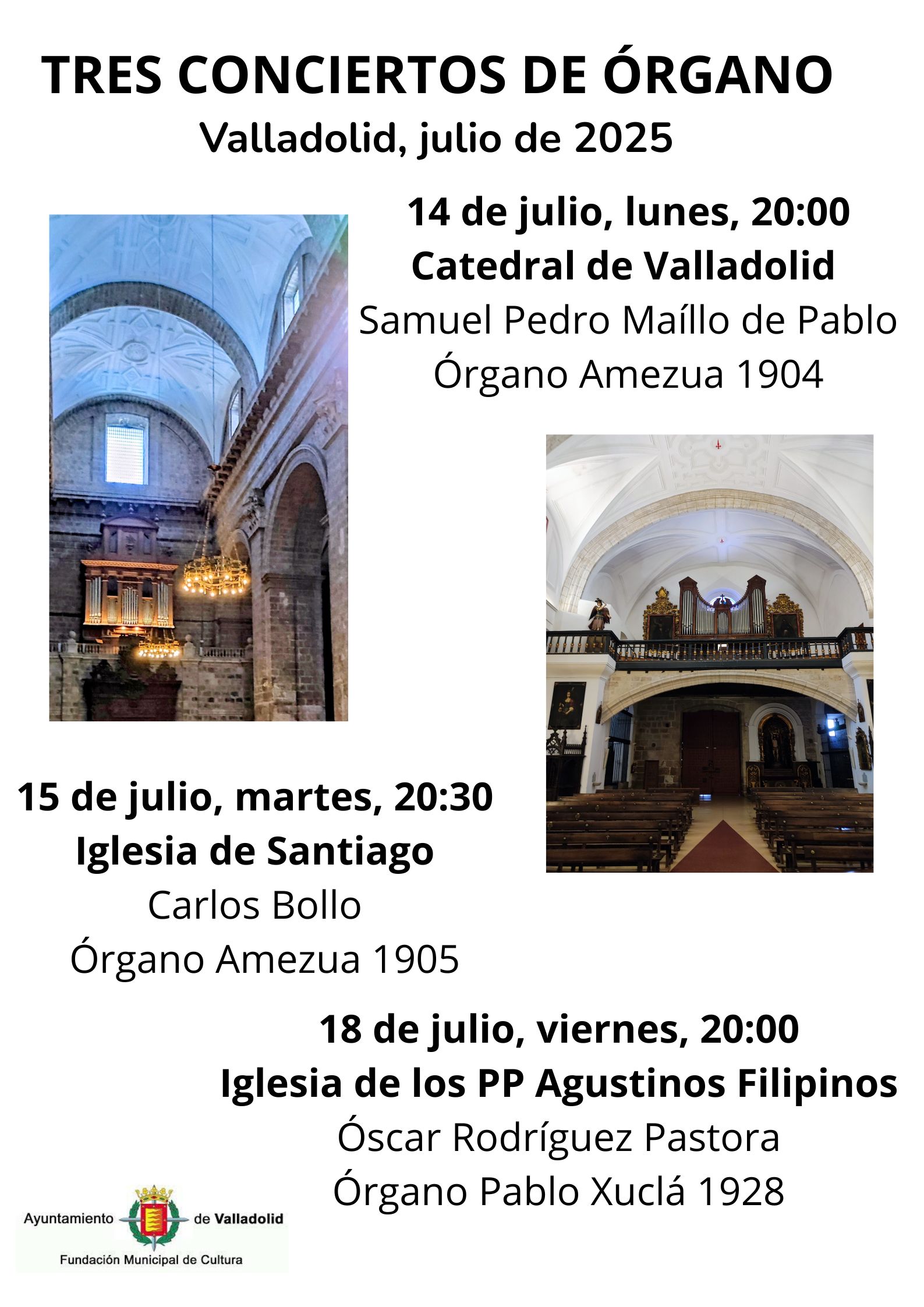 Tres conciertos de órgano van a celebrarse en Valladolid en julio de 2025.